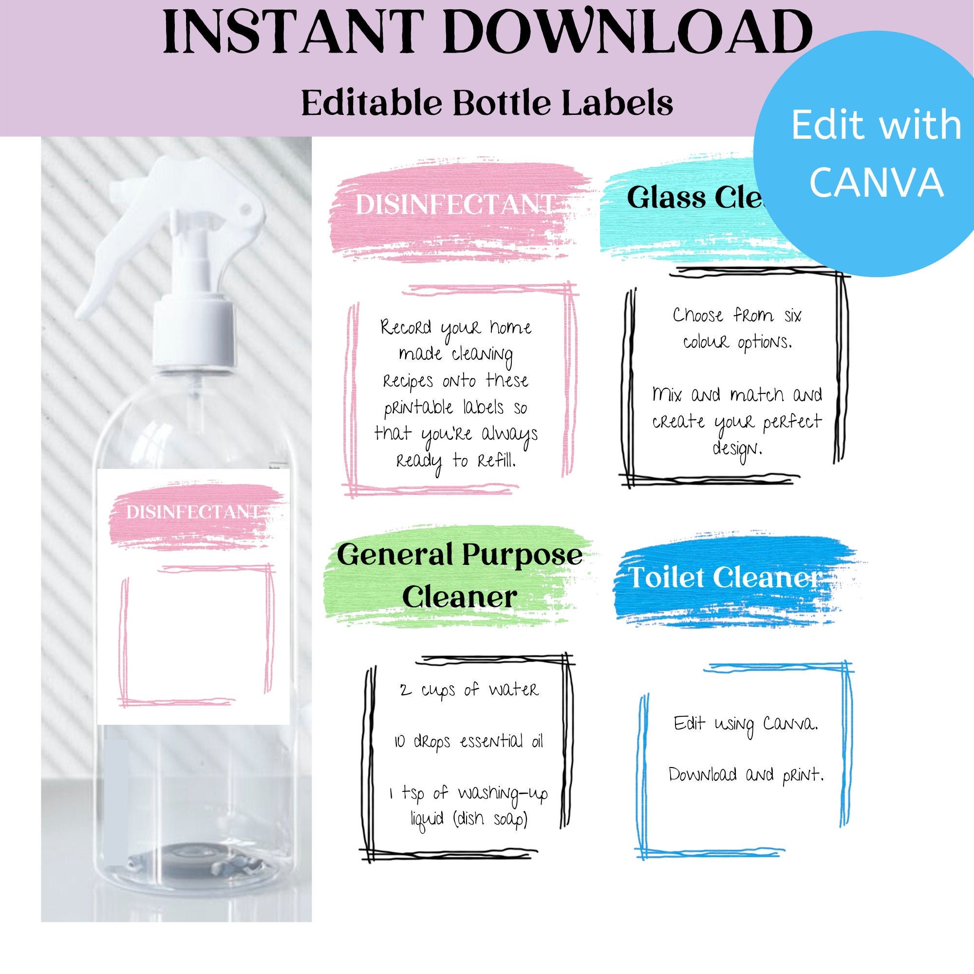 Printable Cleaning Bottle Labels All Natural Cleaning | Etsy Printable cleaning bottle labels - all natural cleaning - cleaning bottle labels - all natural cleaning stickers Price: $0.60 Original Price: $2 Loading In stock. You save $1.40 (70%) Sale ends in 27 hours ... Free shipping eligible Add to Favorites