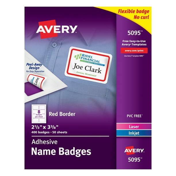 Avery 727825895 $36.62 Avery® White Adhesive Name Badges with Blue Border 5895, 2-1/3" x 3-3/8 ...