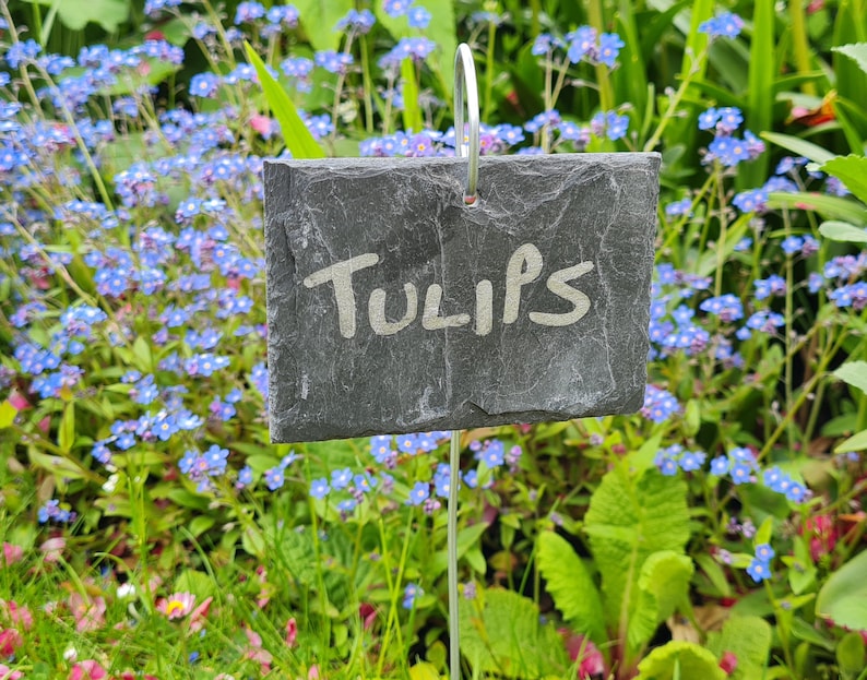 Slate Hanging Plant Labels Tags Plant Markers Garden - Etsy UK (10cm x 6cm) HANDCUT SLATE PLANT MARKERS/LABELS/ TAGS WITH RODS Available as Portrait or Landscape Attractive Handcut slate plant markers for the flower garden and/or veggie patch Durable, hard wearing and weather resistant and can be used year after year Chalk, paint pen or chalk pen can be used to write on the markers Sets of 5, 10, 20 ...