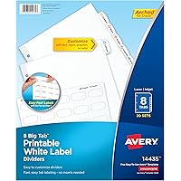 Avery 8-Tab Binder Dividers, Easy Print & Apply Clear Label Strip, Index Maker, White Tabs, 25 Sets (11447)